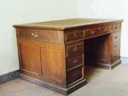 北野政次使用過的辦公桌、椅子、書架:北野政次曾用名北野政藏,日本人。日本東京帝國(guó)大學(xué)畢業(yè),獲醫(yī)學(xué)博士。這一套桌、椅及書架是當(dāng)時(shí)北野政次在“滿洲醫(yī)科大學(xué)”時(shí)使用的“辦公用品”,是由中國(guó)醫(yī)科大學(xué)于1997年捐贈(zèng)給該館的。