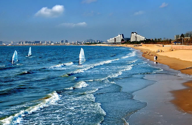 白沙灣黃金海岸(國(guó)家AAAA級(jí)風(fēng)景旅游區(qū))地處蓋州市歸州辦事處、九壟地辦事處西部,全長(zhǎng)14.7公里,距蓋州市區(qū)46公里,距高速公路(熊岳站出口)8公里,濱海公路貫穿園區(qū)。面臨渤海,以海域風(fēng)光為主,海岸蜿蜒,沙灘細(xì)軟,形如新月,景色壯麗。白沙灣是一個(gè)在綠樹(shù)掩映之下的海濱浴場(chǎng),人稱“東北第一灘”。