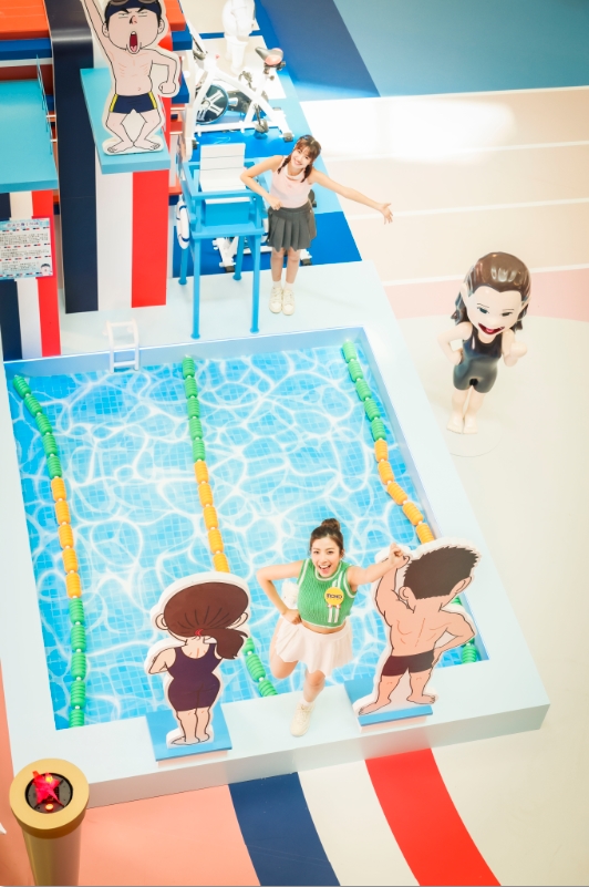 被譽(yù)為“超級女飛魚”的香港知名游泳運動員站在泳池旁為飛魚們加油打氣,貪玩的Cuson則走到跳水臺上扮演跳水高手準(zhǔn)備一躍水中,讓人忍俊不禁,游客們可以走進(jìn)清澈的泳池內(nèi),與游泳運動員們來一場別開生面的“混合挑戰(zhàn)賽”。
