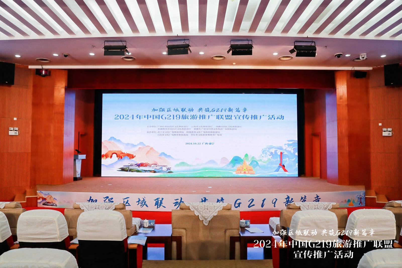 2024年10月21日—24日,中國G219旅游推廣聯(lián)盟宣傳推廣活動(以下簡稱“聯(lián)盟推廣活動”)在廣西南寧市舉辦,本次活動由廣西壯族自治區(qū)文化和旅游廳、云南省文化和旅游廳、西藏自治區(qū)文化和旅游廳、新疆維吾爾自治區(qū)文化和旅游廳、新疆生產(chǎn)建設(shè)兵團(tuán)文化體育廣電和旅游局聯(lián)合主辦。廣西壯族自治區(qū)文化和旅游廳黨組成員、副廳長班華勤、西藏自治區(qū)文化和旅游廳黨組成員、副廳長姬越、云南省文化和旅游廳二級巡視員劉曉桐、新疆維吾爾自治區(qū)文化和旅游廳資源開發(fā)處段玉明處長,新疆生產(chǎn)建設(shè)兵團(tuán)文化體育廣電和旅游局旅游處處長楊紅艷出席活動。來自廣西、云南、西藏、新疆等省區(qū)和新疆生產(chǎn)建設(shè)兵團(tuán)的文旅相關(guān)部門、行業(yè)協(xié)會、文旅企業(yè)代表及旅游達(dá)人、媒體記者等200多人參加活動。