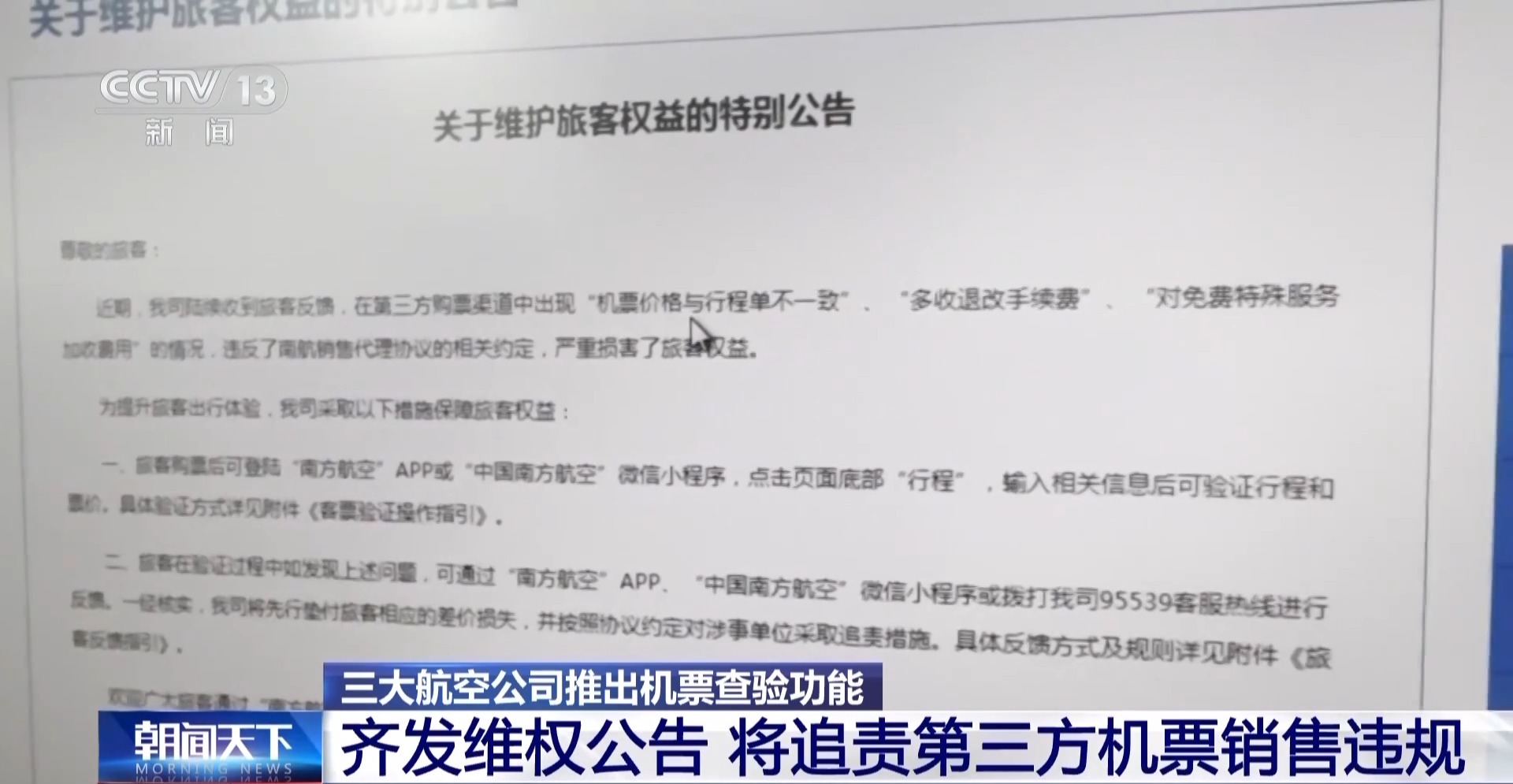 中國法學(xué)會(huì)消費(fèi)者權(quán)益保護(hù)法研究會(huì)副秘書長 陳音江:購買機(jī)票的時(shí)候,一定要保存好支付訂單,包括支付費(fèi)用的清單,同時(shí)查詢到的相關(guān)信息也要截圖,要保留好相關(guān)的證據(jù),然后跟航司協(xié)商解決。也可以向消費(fèi)者協(xié)會(huì)或者民航的行政主管部門投訴,依法維護(hù)自己的合法權(quán)益。