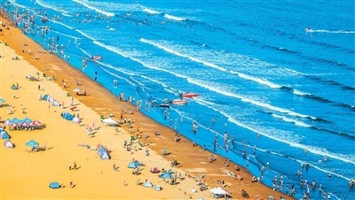 青島的海灘游客如織。