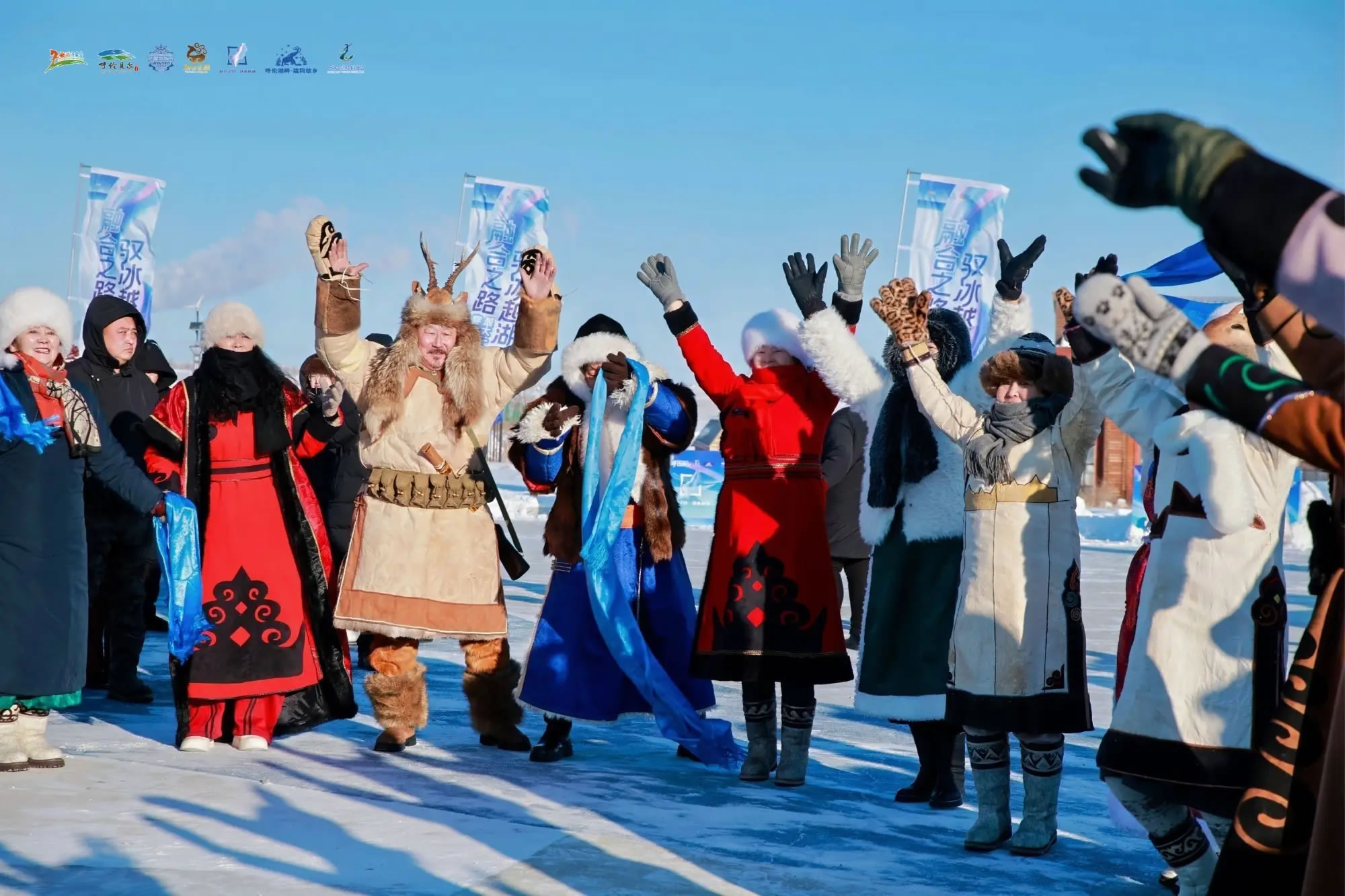 冬日的呼倫湖冰封如鏡,蔚為壯觀。開幕式通過播放活動先導(dǎo)片,系統(tǒng)介紹了活動背景與主題內(nèi)涵。據(jù)了解,本次活動以鄂倫春嘎仙洞至呼倫湖的“融合之路”為文化脈絡(luò),通過點(diǎn)燃火種、自駕穿越冰湖的方式,串聯(lián)歷史記憶、人文精神與冰雪體驗(yàn),展現(xiàn)北疆大地獨(dú)特的文化底蘊(yùn)。活動現(xiàn)場,多民族傳統(tǒng)歌舞情景表演輪番上演,融合地域文化元素與現(xiàn)代冰雪理念的火炬臺被點(diǎn)燃,將現(xiàn)場氣氛推向高潮。