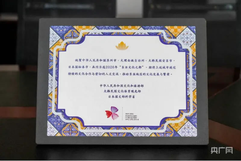 央廣網(wǎng)大理1月7日消息(記者 魏文青)近日,2026年“東亞文化之都”評(píng)選結(jié)果在北京揭曉,大理白族自治州成功當(dāng)選,成為云南省首個(gè)獲此殊榮的城市,也為云南參與東亞城市文化交流打開新的門戶。