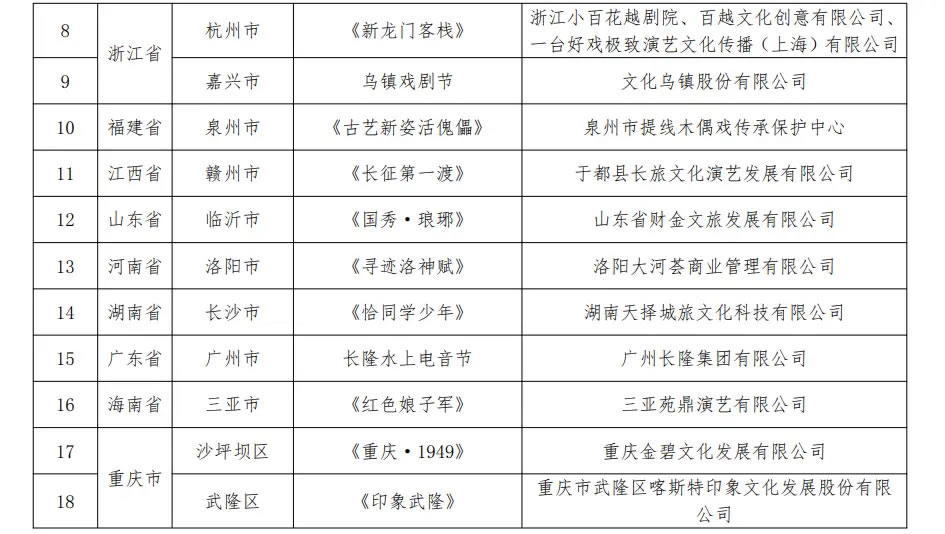 通知指出,各地文化和旅游行政部門要加強對入選項目的指導、支持與服務,加大宣傳推廣力度,引導本地旅游演藝項目準確定位,堅持內(nèi)涵發(fā)展、可持續(xù)發(fā)展,依法演出經(jīng)營,在豐富文旅產(chǎn)品供給、促進文旅消費升級、帶動區(qū)域發(fā)展中發(fā)揮更大作用。