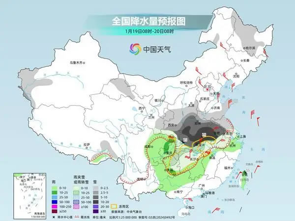 今起三天(1月19日至21日),寒潮持續(xù)影響中東部,大部地區(qū)有雨雪冰凍天氣過(guò)程,氣溫下降劇烈,多地降溫后將體驗(yàn)同期少見(jiàn)的寒冷。其中今天,雨雪天氣進(jìn)入過(guò)程最強(qiáng)時(shí)段,河南、湖北、安徽等地部分地區(qū)或遭遇暴雪,公眾需注意防范。