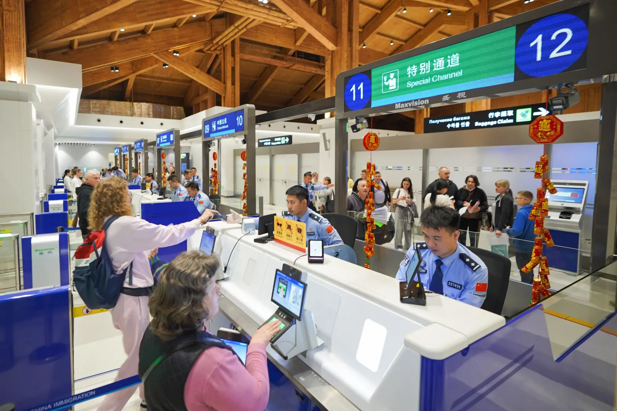 為應(yīng)對(duì)春節(jié)假期出入境客流高峰,美蘭、鳳凰出入境邊防檢查站提前發(fā)布客流高峰預(yù)測(cè),實(shí)時(shí)監(jiān)測(cè)旅客流量變化,加強(qiáng)現(xiàn)場(chǎng)勤務(wù)組織,合理安排執(zhí)勤警力,提前開(kāi)足查驗(yàn)通道,增設(shè)現(xiàn)場(chǎng)標(biāo)識(shí)指引,推出24小時(shí)直接過(guò)境免辦邊防檢查手續(xù)、外國(guó)人入境卡網(wǎng)上填報(bào)、團(tuán)體旅游簽證網(wǎng)上申辦等系列便利措施,確保中外旅客高效、順暢通關(guān)。