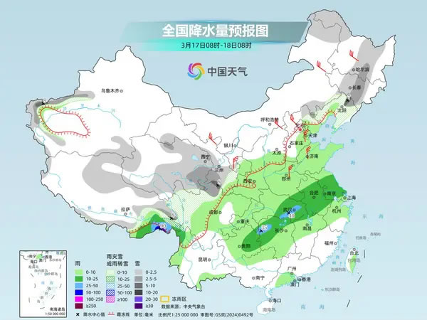 未來一周,西南地區(qū)東部至長(zhǎng)江中下游等地多陰雨天氣,局地或有大雨,公眾外出需帶好雨具,謹(jǐn)防道路濕滑和能見度下降對(duì)交通的不利影響。此外,今明天北方降雪增多,西北地區(qū)東部局地有強(qiáng)降雪,需加強(qiáng)防范。
