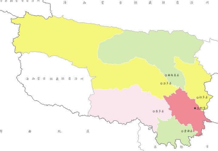 玉樹藏族自治州轄1個縣級市、5個縣: