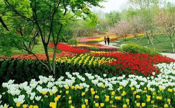彩色植物園位于公園東南側(cè),面積約3.1公頃,集中展示隨季節(jié)變化而呈現(xiàn)不同色彩的觀花、觀葉、觀果類植物50余種,以色葉樹種五角楓、櫸樹、銀杏、黃櫨、紅楓、紫葉矮櫻等植物為主體,配置以色彩鮮艷亮麗的時令花卉,如郁金香、波斯菊、硫華菊、百日草等,也有“活化石”水杉、銀杏等植物。