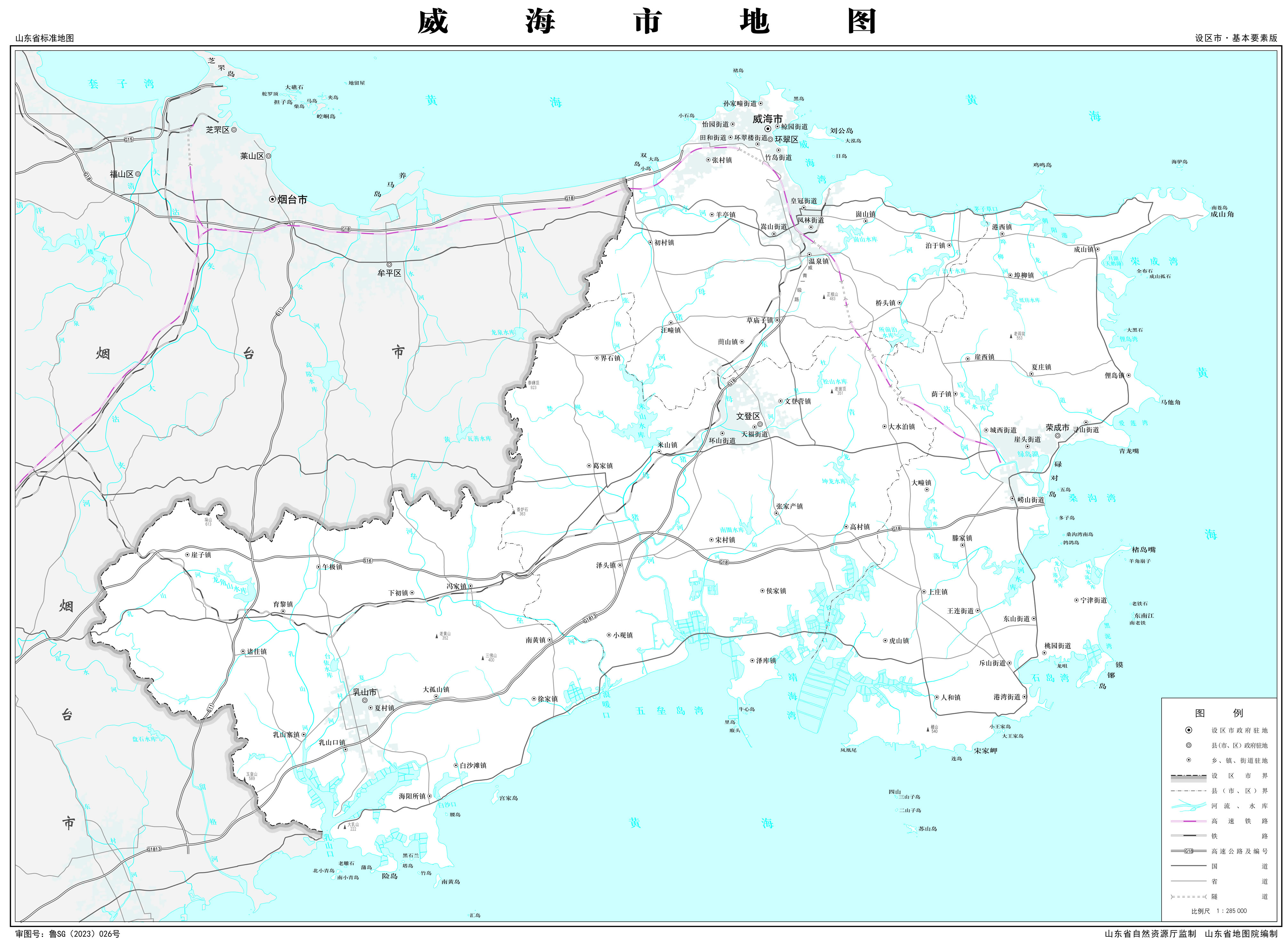 威海市轄2個市轄區(qū),2個縣級市:
