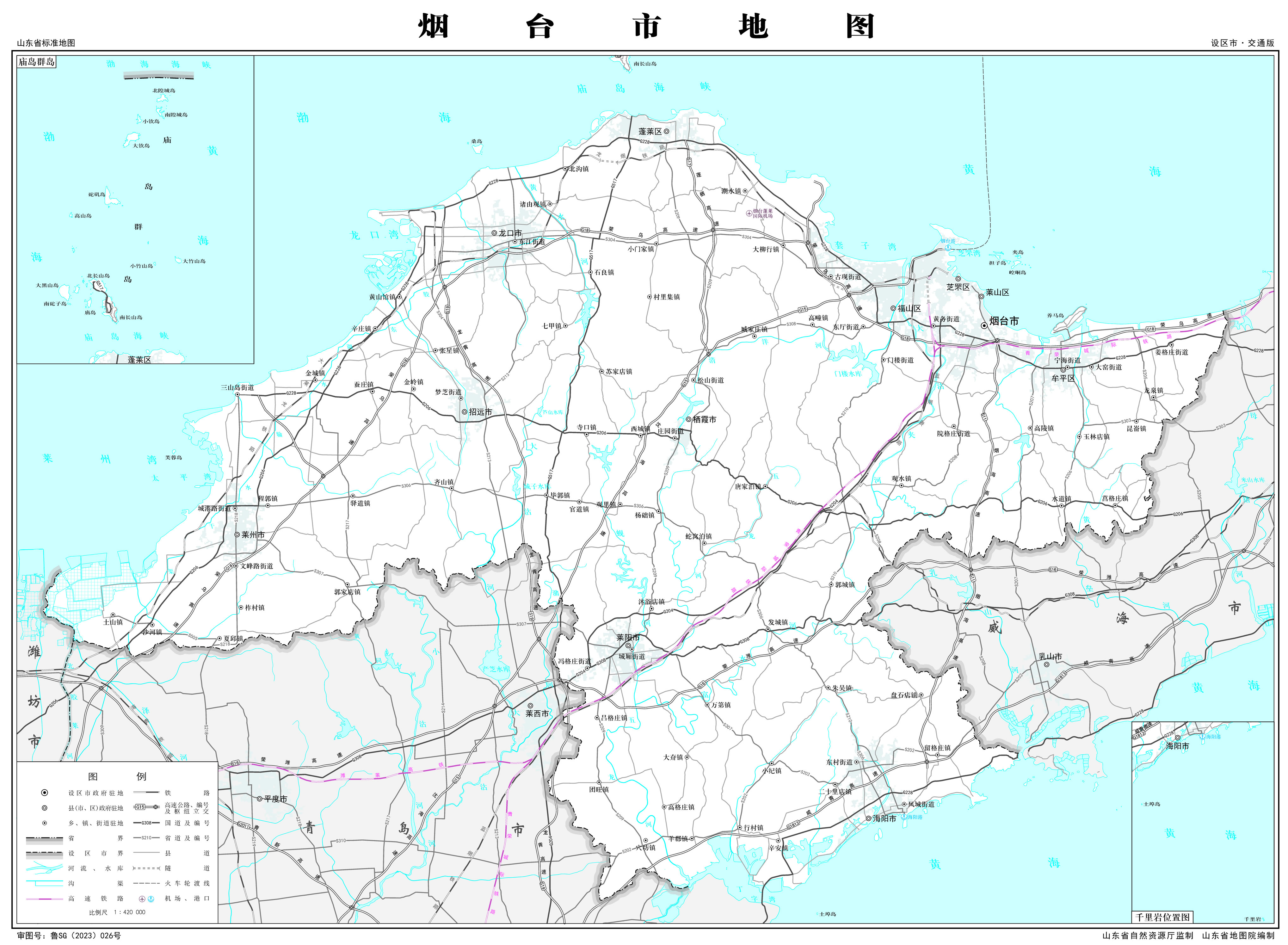 煙臺市轄5個市轄區(qū),代管6個縣級市: