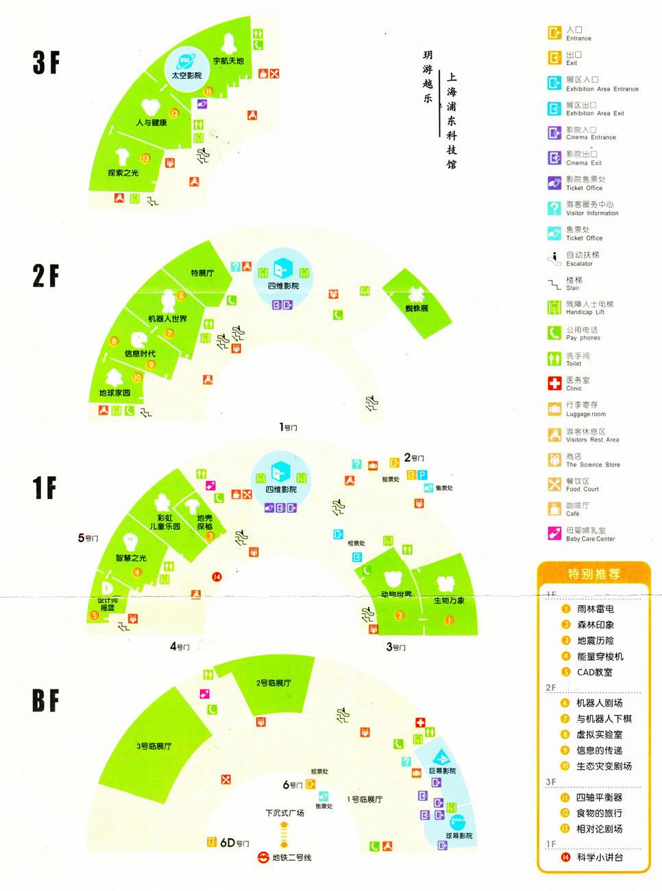 該層主要設(shè)有兩個IMAX科學(xué)影院(IMAX三維巨幕影院和球幕影院)、張江創(chuàng)新成果展、快餐廳。地下一層是該館服務(wù)設(shè)施最集中的公共區(qū)域,內(nèi)有售票大廳、大食代美食天地、休閑長廊和臨展大廳。此外,也在該區(qū)域中。上?萍拣^設(shè)有外來展覽專用場地,該場地位于上?萍拣^內(nèi)B1層,面積約1200平方米,水電供應(yīng)齊全,展覽區(qū)域設(shè)有專用通道和售票點。臨展館是理想的展覽、展示的場地,參展商可獨立舉辦,也可與科技館共同策劃組織協(xié)辦和合辦各類科普、科技展覽以及科技成果展示。