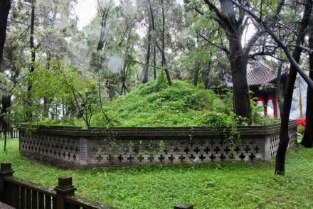 陵冢為土冢,扁球狀,高3.5米,直徑為16米,周長(zhǎng)48米,有磚墻圍護(hù)。土冢下部筑方形墓臺(tái),以烘托陵墓的神圣感。方臺(tái)與圓冢相結(jié)合,上圓下方,具有“天圓地方”、“天地相合”的象征意義。
