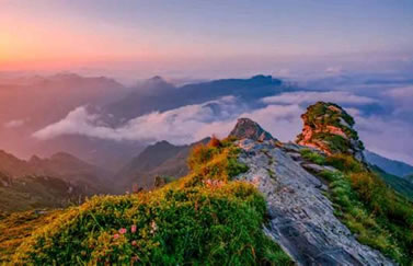 太白山千峰競秀,萬壑藏云。在海拔2000米以上的地方,可看到極其壯觀的云海,以平安寺為最。平安寺地處海拔2700米的山梁上,周圍群峰聳立拱峙,勢若圍屏,山峰間溝壑寬闊,深邃莫測。向南展眸,拔仙臺、跑馬梁、鰲山相連如駝峰顯現(xiàn)。向西北遠(yuǎn)眺,桃川河帶狀蛇迥,隱隱可見。站在平安寺,但見云層如海濤洶涌,變幻多端。時而“涌濤掀浪”,不可遏止,時而“風(fēng)平浪靜”,霧散云匿,時而濃云密霧鋪天蓋地,時而白云輕如鮫綃。朝、夕晴朗之時,云海霞光映金,景色煥然一新。置身云海之中,使人有進(jìn)入神話傳說的仙境之感。