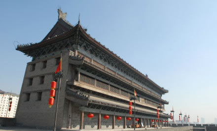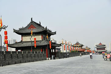 雄偉壯觀的西安城墻已成為市區(qū)最吸引人的觀光勝地之一。沿城墻外側(cè)已建成“環(huán)城公園”,成為城市居民晨練的絕佳活動(dòng)場(chǎng)所。 |