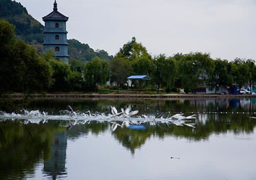玉華宮東宮也叫郭玉溝,樹木郁蔥,清泉細(xì)流,天然巖窟鬼斧神工,人文景觀與自然景色渾然一體,若仙境一般。初春,山花爛漫,到玉華宮賞花,沉醉于山花爛漫之中,流連忘返;盛夏,溪回松風(fēng),曠然神怡,到玉華宮避暑,置身天然氧吧,感受郭玉溝的清爽和寧?kù)o;金秋,秋菊盛開,色彩斑斕,到玉華宮游園,體驗(yàn)陶淵明“采菊東籬下,悠然見南山”的閑情;隆冬,銀裝素裹,冰雕燈展 喜迎四方游客。