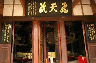 飛天藏又名星辰車,南宋淳熙八年(1180年)建,元代至正時(shí)重修,“明季兵火,惟此獨(dú)存”。是我國唯一現(xiàn)存的宋代道教木制轉(zhuǎn)輪經(jīng)藏。傳說推動星辰車,可祛病強(qiáng)身,延年益壽?上б?yàn)榈钣钫诜,未見到這件寶貝。