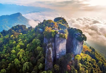 二絕鐵索飛渡:連接主峰的鐵索懸橋初建于唐代,先后換修6次。山上還有身懷絕技的飛人,在鐵鏈上表演,行走如風(fēng),被譽(yù)為“華夏一絕”。