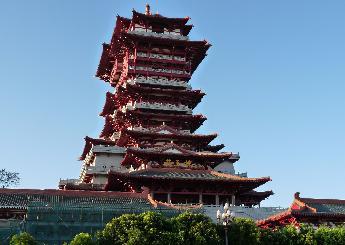 位于游仙區(qū)龜山之巔,始建于唐高宗顯慶年間(656年—661年),已有1300余年歷史,是與黃鶴樓、滕王閣、岳陽樓齊名的唐代文化名樓之一。東望富樂(山)、西接碧水(寺)、南眺南(山)塔、北連九院(科學(xué)城),踞龜山傍涪水,攬綿州之勝于無余。歷代詩人題詠越王樓詩篇多達150余篇,其中尤以詩仙李白的《上樓詩》:“危樓高百尺,手可摘星辰,不敢高聲語,恐驚天上人!甭劽煜。