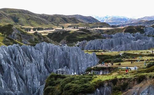 石林含鈣鹽,受空氣濕度的影響,干燥季節(jié)呈淺灰色、淺藍色,濕潤季節(jié)呈蒼黑色,又稱之為變色石林。