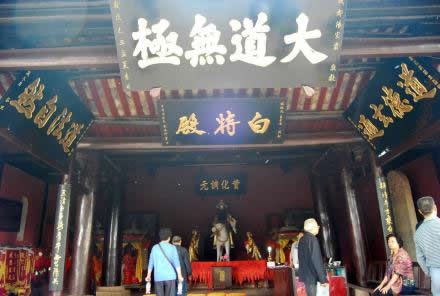 風(fēng)洞樓下是白特殿!疤亍笔潜锐R還能跑的動(dòng)物,它馬頭、驢身、騾尾、牛蹄,俗稱“四不像”,古人說“千里馬、萬里特”。傳說文昌帝君的坐騎就是全身色白的特,即“白特”,明代著名小說家馮夢(mèng)龍?jiān)珜憣?duì)聯(lián):“梓潼帝君乘白特下臨凡界,三清老子騎青牛西出函關(guān)”。這座殿堂就因白特而得名。