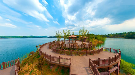 仙海親水棧道,臨湖而建,采用木、石等生態(tài)材質(zhì),融湖光山色于一體。起于雷耀酒店,經(jīng)水庫(kù)大壩,沿湖畔蜿蜒曲折,止于長(zhǎng)虹研發(fā)園。首期全長(zhǎng)約6公里,遠(yuǎn)看近看,宛如一條蛟龍,行走其間,宛如蛟龍入海。