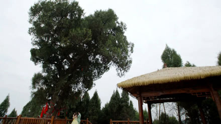 民間關(guān)于神仙樹(shù)的美麗傳說(shuō)很多,相傳某年的八月八日,不知何方的一高一矮,一胖一瘦,一位仙風(fēng)道骨,一位邋遢放浪的老者,飄然來(lái)到尖包嶺,點(diǎn)石為枰,碎石為棋,以石為凳,手談對(duì)弈。棋勢(shì)變幻之間,四周時(shí)而雷霆激蕩,時(shí)而風(fēng)和日麗,時(shí)而萬(wàn)物沉寂。這樣,不知過(guò)了多少時(shí)候,兩位老者抹掉棋枰,拂去棋子,背北面南,嘴里念念有詞,手里比比劃劃,頃刻間,尖包嶺大雨傾盆,繼而和風(fēng)細(xì)雨,云蒸霞蔚,兩位老者飄然而去,所坐之地變成了五花石,形如花瓣的五花石中間長(zhǎng)出兩棵高低錯(cuò)落、枝繁葉茂的翠柏。從此,人們就把翠柏叫作“神仙樹(shù)”,把 “尖包嶺”叫作“神仙梁”。又有民間記載:仙海湖所在沉香鋪(現(xiàn)名沉抗鎮(zhèn))是民間傳說(shuō)《寶蓮燈》中三圣母之子沉香生長(zhǎng)和得道升仙的地方。據(jù)《廣異記》載:沉香大孝,其母被二郎神楊戩壓于華山之下,沉香以神、斧打敗二郎神,劈山救母,而神仙樹(shù)就是沉香仙子母子二人化身而來(lái)的兩株古樹(shù),交織相連,撐天而起,屹立山巔,母子倆以深情目光,凝視著天下樹(shù),庇護(hù)這天下蒼生。
