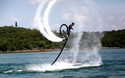 在這里,您可以親身體驗(yàn)風(fēng)靡歐美、驚險(xiǎn)刺激的水上摩托、賽艇、香蕉船、滑水、水上飛人、水上自行車(chē)等運(yùn)動(dòng)項(xiàng)目;您可以在豪華舒適的游船上盡情領(lǐng)略神奇秀美的仙海風(fēng)光,享受愜意休閑的假日!