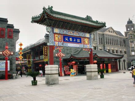 于1986年元旦建成開業(yè)。自古以來,這一帶就是天津最大的集市貿(mào)易和年貨市場(chǎng),每年春季,天津規(guī)模盛大的皇會(huì)——娘娘誕辰吉日就在這里舉行,屆時(shí)表演高蹺、龍燈、旱船、獅子舞等。新建的古文化街內(nèi)除兩端牌樓及宮前戲樓為仿清大式建筑外,其余近百棟房屋皆為仿清民間小式古建筑。
