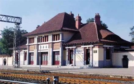 靜海站,始建于1908年,為日耳曼風(fēng)格,方向正東,結(jié)構(gòu)為德式馬尾柁架建筑,面闊6間,四面均有門窗,建筑面積655平方米。正面候車處有三扇大門,中間外墻上寫有“靜海站”三個(gè)大字,每扇門窗兩側(cè)均有磚砌方柱,上有磚拼造型,兩側(cè)房檐下內(nèi)外均有磚砌菱形圖案。