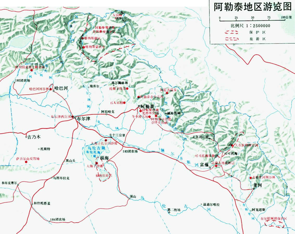 阿勒泰地區(qū)是新疆豐水區(qū)之一。有額爾齊斯河、烏倫古河、吉木乃山溪三大水系,大小河流共56條。較大的湖泊有烏倫古湖、喀納斯湖、吉力湖等。