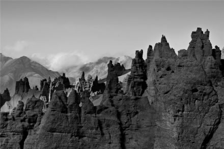 奎克烏蘇石林因位于天山山脈西段、那拉提山北麓的奎克烏蘇達坂之下而得名,石林區(qū)海拔3500米,長9千米,寬5千米,相對高度30米。石林似林非林,它是由半膠潔的砂礫巖層經(jīng)外營力的長期雕塑,變得千姿百態(tài),光怪陸離,石林中有“歐洲古堡”,肅穆森嚴,有“寶劍出鞘”,刺破青天,有“行人走獸”,或臥或躺。