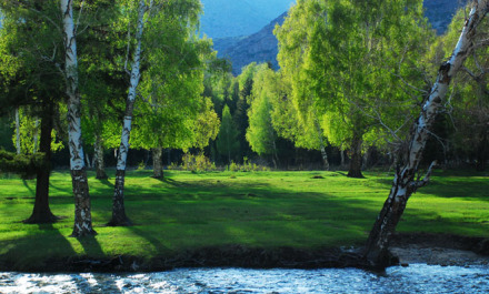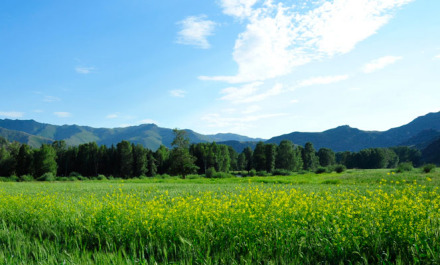 百花草場位于新疆富蘊縣可可托海風景區(qū)額爾齊斯大峽谷,清澈的額河水從它的西側(cè)流過。有滿天星、野油菜花、映山紅、野菊花、刺薔薇等花草。