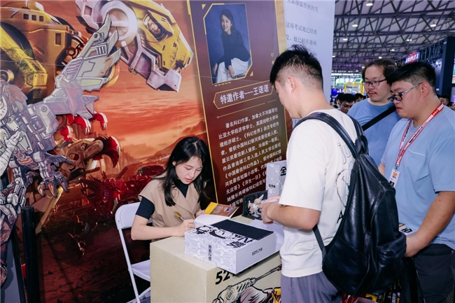 作為國創(chuàng)變形機甲代表性IP,猛獸匣(BEASTBOX)系列成為本次52TOYS展區(qū)的最大亮點,產(chǎn)品和內(nèi)容成果頗豐。備受玩家期待的猛獸匣首部官方小說《猛獸匣:金屬之歌》珍藏版在展會現(xiàn)場超前發(fā)售,小說作者、曾榮獲中國科幻銀河獎最佳新人獎的科幻作家王諾諾親臨現(xiàn)場簽售。小說以其精美的裝幀與引人入勝的設(shè)定,迅速成為資深玩家與科幻愛好者爭相收藏的對象,現(xiàn)場等候簽售及購買的粉絲排起長龍。