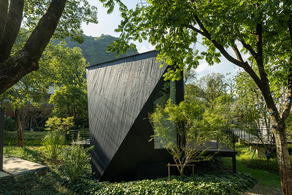 架空設(shè)計的海螺屋客房隱于林間,如同童話故事中的精靈居所,為住客營造出私密而夢幻的休憩空間;天文臺客房懸于巖壁之上,通過客廳的望遠(yuǎn)鏡和全景天窗可賞星河美景,將浩瀚星空引入室內(nèi);炭晶舍客房以傳統(tǒng)炭雕藝術(shù)為靈感,通體的炭黑色藝術(shù)感十足,展現(xiàn)出材料與自然的深度對話;復(fù)式結(jié)構(gòu)的玉江舍客房,則讓賓客在空間轉(zhuǎn)換中,收獲山川、江潮等不同的觀景視野,實(shí)現(xiàn)移步換景的居住意境。