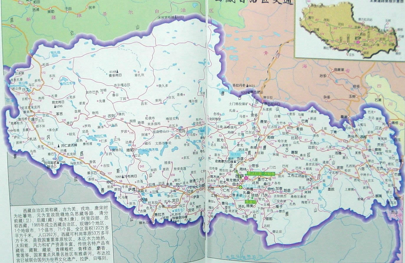 西藏,古為羌、戎地。唐、宋時為吐蕃地。元為宣政院所轄烏思、藏、納里速古魯孫等三路宣慰使司地。明代依元制,仍稱“烏思藏”。清代分為“衛(wèi)”(前藏)、“藏”(后藏)、 “喀木”(康)、“阿里”四部,因在中國西境,故總稱“西藏”。“西藏”一詞,最早見于清康熙二年(公元1663年)。1951年和平解放西藏。1956年將原西康省昌都地區(qū)并入西藏。 1965年9月9日,建立西藏自治區(qū)。