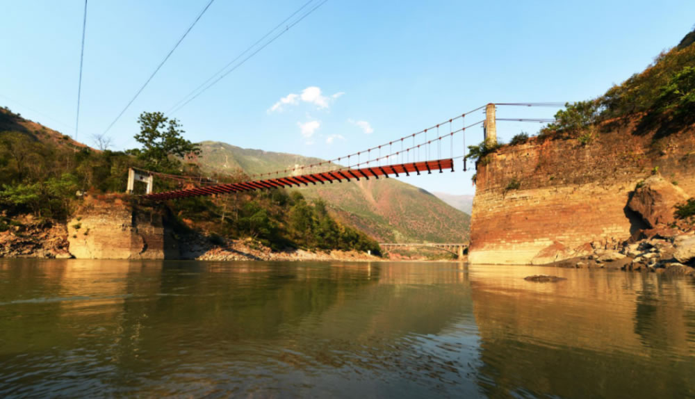 惠通橋位于施甸縣與龍陵縣分界的怒江上,位于云南省保山市龍陵縣臘勐鎮(zhèn)臘勐社區(qū),吊橋全長205米,跨徑190米,由17根巨型德國鋼纜飛架而成,最大負(fù)重7噸。 惠通橋,始建于明朝末年,初為鐵鏈索橋,位于滇緬公路(中國段)六百公里處,滇緬公路的咽喉。民國二十五年,新加坡華僑梁金山捐資,將舊橋改建為新式柔型鋼索大吊橋。吊橋全長205米,跨徑190米,由17根巨型德國鋼纜飛架而成,最大負(fù)重7噸。至1977年新建鋼骨水泥大橋落成通車,吊橋開始廢棄不用。