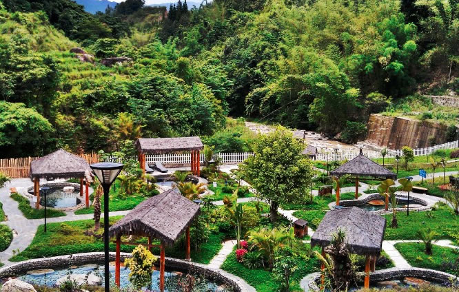 溫泉 龍陵縣共有42處溫泉,分布在縣內(nèi)的各個鄉(xiāng)鎮(zhèn),其中溫泉最集中的是被譽(yù)為“神湯奇水”的邦臘掌,泉區(qū)溫泉密布,有泉眼100余孔,日供水量1382.4立方米,最高水溫達(dá)102攝氏度,僅在0.4平方公里區(qū)域內(nèi)就容有氡氟泉、碳酸泉和硫磺泉等多種溫泉,堪稱“溫泉博物館”。
