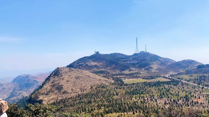 梁王山原名羅藏山。因元朝成吉思汗之孫世襲封號而得名,山勢雄偉壯麗,峭壁千仞,群峰簇?fù)恚拍緟⑻,海?820米。登上頂峰,方圓數(shù)百里盡收眼底,有一山觀三海(滇池、陽宗海、撫仙湖)之壯景。夏秋之季時見頂峰白云籠罩,或許白云環(huán)繞山腰,多為有雨之兆;秋日山花爛漫,繁花似錦,故有“梁峰兆雨”、“白云兆雨”、“羅藏秋色”之景。