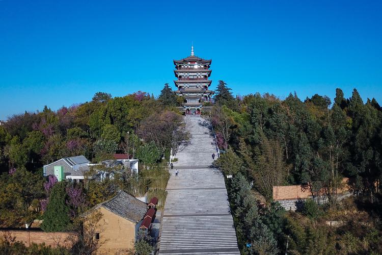 三臺山位于滇池東岸,海拔高度1956米,因山勢三疊成臺而得名。中臺形如鳳翥,又稱鳳嶺。滿山松柏蔭翳,古木參天,為呈貢十六景之一。三臺山是觀賞滇池全貌的最佳點之一,園內(nèi)有望海廊、東驤閣。
