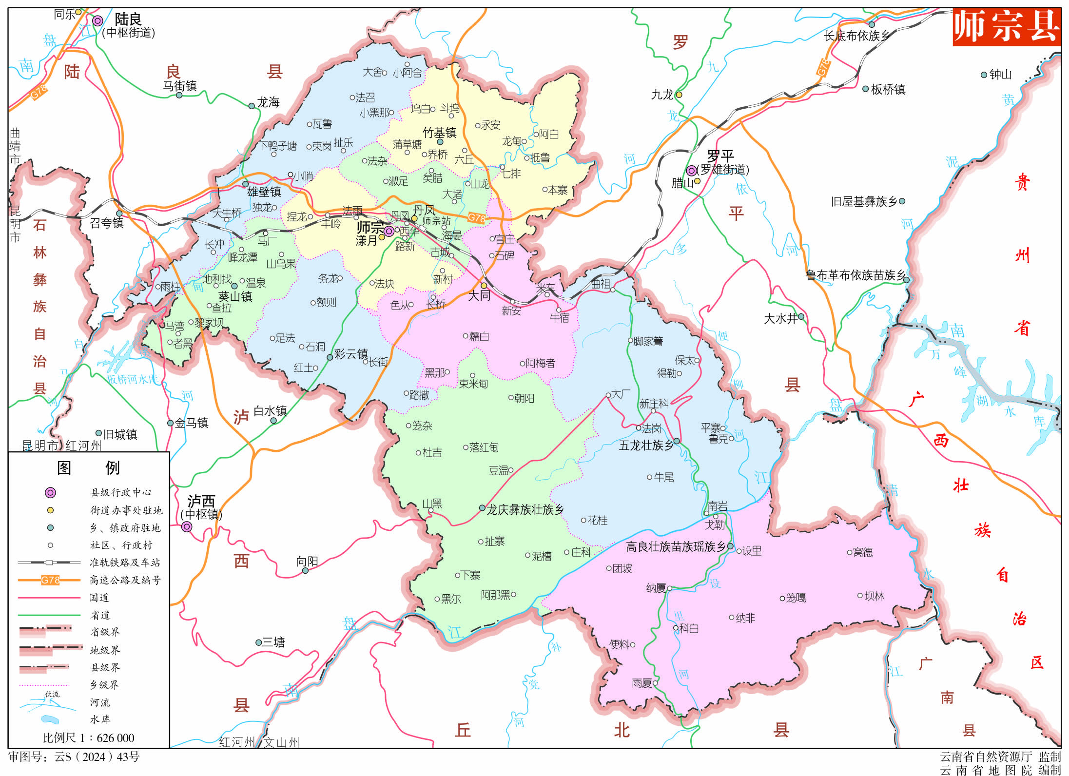 師宗縣轄3個(gè)街道、4個(gè)鎮(zhèn)、3個(gè)鄉(xiāng):