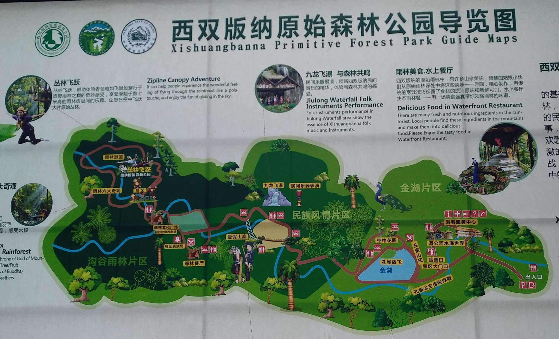 中心游憩區(qū),建有娛樂中心,會議服務(wù)中心,西雙版納民族歌舞餐廳,停車場所。可為客人籌辦會議,組織娛樂活動,西雙版納學(xué)術(shù)交流,貿(mào)易洽談會……。西雙版納原始森林公園,森林密布,山青水碧,游覽面積寬闊,西雙版納民俗活動多樣,服務(wù)設(shè)施齊全。游人們可以在此飽覽風(fēng)光,體驗(yàn)西雙版納民族風(fēng)情,獲得美的享受。