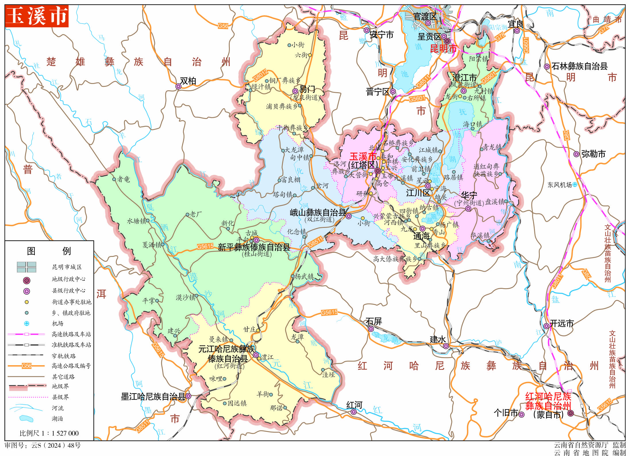 玉溪市轄2個(gè)區(qū)、6個(gè)縣、1個(gè)縣級(jí)市: