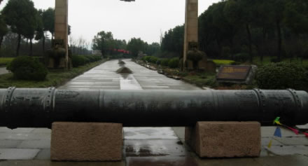 龍杠,位于入口處的大禹陵牌坊前一橫臥的青銅柱子,名龍杠。龍杠兩側(cè)各有一柱,名拴馬樁。凡進入陵區(qū)拜謁者,上至皇帝,下至百姓,須在此下馬、下轎,步行入內(nèi),以示對大禹的尊崇。龍杠上有“宿禹之域,禮禹之區(qū)”的銘文。