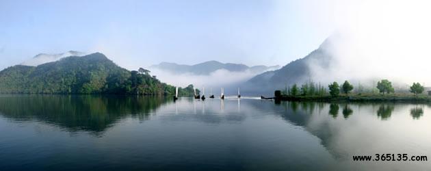 仙宮湖:崛立在云和縣緊水灘的浙南第一壩緊水灘水電站大壩,將滔滔甌江攔腰鎖住。在水電站建成的同時,浙南的茫茫林海中奇跡般地出現(xiàn)了一個巨大的人工湖緊水灘庫湖。1993年8月9日經(jīng)地區(qū)行署批準,改名為仙宮湖。放眼全湖,碧波蕩漾,晶瑩似鏡,周圍千姿百態(tài)的奇巖異峰、浩如煙海松濤,點綴湖邊的村莊、田野和山林,好似一幅色彩斑斕,絢麗多姿的山水畫。這里廣闊的湖面,煙波浩渺,水山相連,望不盡頭。與千島湖相比,雖無“千島”之態(tài)。但湖中島嶼正在一個個形成。隨著蓄水位的漸漸增高,將會出現(xiàn)更多“湖心之島”。那晶瑩澄碧的湖水在陽光的照射下,閃著瀲滟的波光,似一顆閃眼的明珠,鑲嵌在群山峻嶺之中。湖兩旁的松杉。翠竹掩映于湖唇,好似繡上一道花邊,君若泛舟湖中,其可謂“人行明鏡中”了。倘若天氣作變,更給景色增添妙異的變幻。晴天,頭上藍天萬里,腳下碧波千頃,點點白帆移動,轟轟船只掠過,舉目望去,山水一色;回首顧盼,卻置身于綠水青山之中。雨天,霧靄茫茫,層林碧水連成一片,人在湖面,有身置云霧瓊樓仙境之感。尤其在赤石、龍門一帶,水域?qū)掗,島嶼列布,湖區(qū)四周還有“九潭十八灣”、“夏洞天”、“龍老洞”、“蝴蝶洞”、“牛頭山”等勝景。仙宮湖不愧為特具魅力的旅游勝地。