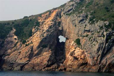 說起南麂列島的絕景,天然壁畫應(yīng)是“首絕”,這又是大自然杰作。位于三盤尾南部東側(cè)峭崖處,是原杭州大學(xué)張友良教授首先發(fā)現(xiàn)。畫壁寬約40米,高30余米,氣勢恢宏,層次分明,被專家譽(yù)為“國寶”和東海奇觀。就在礁石錯(cuò)落,白浪排空處,高矗著一幅石屏風(fēng),整個(gè)巖面宛然是一幅天然山水畫,其中一尾大龍蝦栩栩如生,十分逼真。歷來山水畫家?guī)煼ㄗ匀唬殖Y澝雷匀痪拔餅椤疤扉_圖畫”。眼前,這天然壁畫給人帶來意外的美的享受。