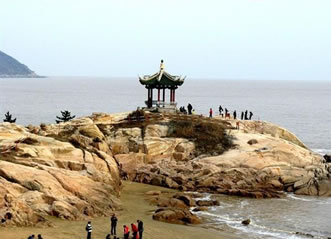 位于佛國山門東南約300米處。灘上有“闊十余米,長百來米,小石自相零附,兩側(cè)錯列巨細(xì)不一、形狀各異的巖石”,有些石上鐫有“短姑古跡”等字樣,出沒于潮汐浪濤之中,成為舊時的天然船埠。船到短姑道頭邊,可是靠不了岸,還得用長不過一丈、寬不過三尺的小舢板擺渡。清光緒三十一年(1905年),普陀山住持了余、蓮禪二僧因潮落潮漲,往來船只靠岸不便,遂募資用巨石壘成長達(dá)11米,寬8米的石條道頭。在未建普陀山客運碼頭之前,凡前來普陀山參禮進(jìn)香、攬勝觀光者,都得由此登岸。