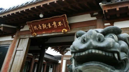 不肯去觀音院,位于紫竹林。不肯去觀音院是當(dāng)年慧鍔法師供奉不肯去觀音的地方,是普陀山觀音道場的發(fā)源地,F(xiàn)殿內(nèi)供仿唐式十一面觀音像,寺院西側(cè)筑“三十三觀音靈場”長廊,內(nèi)塑日本33座供奉觀音的寺院主尊。