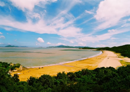 千步金沙長1370米,寬400余米,是舟山群島第二大沙灘,位于舟山普陀山。千步金沙又稱塔灣金沙,據(jù)傳在塔灣南側(cè)龍?zhí)犊釉ㄓ幸皇,港灣倒映塔影,故而得名。千步金沙屬?xì)型沙質(zhì),細(xì)軟純凈。